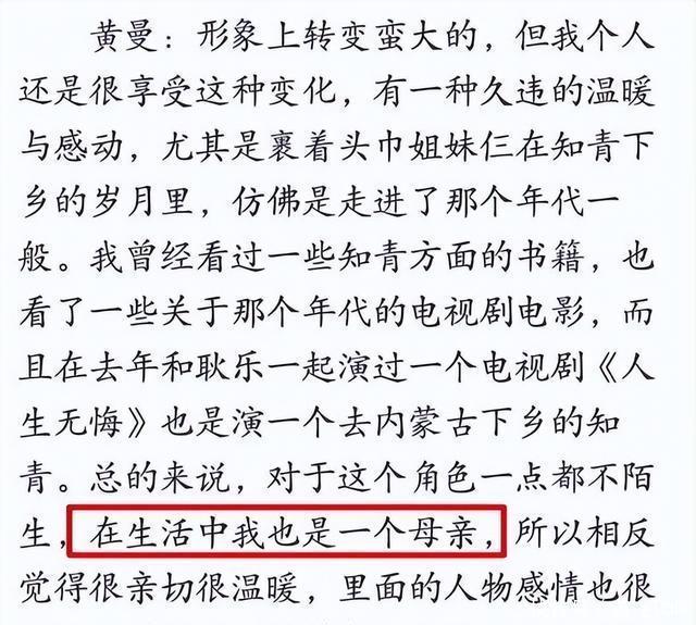 在娱乐圈,大部分演员都想红,但有的演员就是“故意”不想红。 其中一位就是黄曼。 前段时间,她参演的《护宝寻踪》热播。 她饰演的角色被很多人讨论,但是作为演员的她,却还是不红。 人们总记不住她的名字。 但这并不代表她的演技不好。 她的演技受到行业内许多人士的称赞。 李乃文表示,一般都是戏把人捧红,但是黄曼却捧红了很多戏,随后低调离开。 吴越表示黄曼的演技让她震惊。 金星表示黄曼跳舞是国标级。 很多人更是羡慕她45岁年龄,却是25岁的容貌与身材。 那么,黄曼的演技有多好,又有多低调? 她“不老”的背后藏着什么秘密? 黄曼的母亲是一位普通的戏曲演员,并不太出名。 她很小的时候,母亲就希望培养她跳舞,未来成为一个舞蹈演员。 她还有一个哥哥,哥哥不论是容貌还是身材,都比她要好看。 母亲希望她和哥哥都去学跳舞,便带着他们,一起去舞蹈培训班。 哥哥并不情愿,因为他觉得他是男孩,男孩学跳舞总觉得很奇怪。 黄曼的母亲看儿子态度坚定,不想学习跳舞。 女儿看起来跃跃欲试,便把希望寄托在女儿身上。 黄曼的母亲带着两个孩子到舞蹈培训班后。 老师却看中了黄曼的哥哥,因为黄曼的哥哥长得更好看。 从小到大,黄曼一直因为她没有哥哥长得好看,而自卑烦恼。 在培训班,她又被打击了一次。 只是哥哥不想跳舞,老师没办法,只能选择了黄曼。 黄曼心里憋着一股气,学习跳舞时,便十分努力。 虽然她长得不好看,但因为跳舞表现优秀,还是得到老师的称赞。 只是跳舞并不是黄曼的梦想,她对表演比较感兴趣。 于是,上大学时,她报考了表演专业。 在学校里,她并不起眼。 因为她的长相没有记忆点,让人觉得不深刻,更不漂亮。 所以毕业后,她一直找不到机会去拍戏。 没办法,她只能暂时放弃拍戏这个职业,开了一家饭店谋生。 只是这种生活并不是她想要的。 没过多久,她又想去娱乐圈拍戏,于是又尝试找机会。 皇天不负有心人,她终于找到合适的机会。 虽然是一些普通小配角,但是起码有了拍戏机会。 她每场戏都表演得很认真。 她的容貌也不适合演偶像剧,所以她演的现实题材的剧比较多。 她演技又很好,所以刚开始她就不是偶像剧演员,而是实力派演员。 她的实力在于,观众总能记住她饰演的角色。 对角色印象深刻,讨论比较高,但是对演员的她却没印象。 这就是所谓的剧抛脸,因为让人太入戏,所以就不会想起演员。 在《半路夫妻》中,她饰演了一个“坏女人”,引起了很多观众的争议。 角色很复杂,并不容易演。 但是她却通过微表情和肢体语言,很好的演绎出来。 她的演技不单调平淡,而是相当丰富,富有张力。 她在《勇者无敌》中饰演地下党员。 在《二婶》中饰演中国传统女性。 她参演过谍战剧、农村题材剧、都市剧等。 各种题材的剧,对她来说,演起来都不困难。 她的表演风格情感细腻,富有层次感。 那么,为何她的演技如此好,却一直不红? 除了容貌辨识度不高,她饰演的角色多为母亲的角色。 主要是她很低调,从来不炒作。 她没有在事业和感情生活方面宣传过自己。 网上看不到她工作与生活的很多内容。 有一次,她去参加舞蹈比赛,获得大奖。 本来有出名的机会,但是她却在比赛后隐身,越发低调。 如果放在别的艺人身上,可能就发各种文稿宣传自己。 那些喜欢炒作的演员,总喜欢和各路媒体打交道,以此来提高名气。 但黄曼却从来不如此做。 黄曼的感情生活也很低调。 她的丈夫是她大学同学,两人在大学恋爱,毕业后结了婚。 黄曼拍戏时,她的丈夫总是很关心她。给她打很多电话,关心她的饮食起居。 他们基本上不吵架,如果有矛盾,很快也会和好。 黄曼拍戏没时间照顾家里的时候,她的丈夫就担负起照顾家庭的责任。 黄曼也很懂教育,经常会给女儿写信。 她的女儿也乖巧懂事,如今已经成年,容貌还很漂亮。 黄曼和女儿在一起,就像姐妹一样。 45岁显得就是20多岁,那么她是如何保养的? 她并不像很多演员保养皮肤,用很多很贵的护肤品。 也不像他们一样,脸上涂着厚厚的粉。 她只用着很简单的护肤品,最多也就三样,水霜加防晒,其它的都不太用。 更不喜欢脸上抹太厚的粉。 她喜欢运动,每天都会跑步。 家庭氛围又和谐,不太生气。 家人之间如果有什么矛盾,她会选择好好沟通,多为对方着想。 工作时,她只想着好好拍戏,不会与人勾心斗角,自寻烦恼。 她不注重名利,也就会少很多不甘。 她想的很开,只要有戏拍,赚的钱够生活就好。 她也一直保持着年轻的心态。 各种原因加起来就不显老。 当然,她本身也不注重自己老不老。 就算显老,也无所谓。 这才是真正淡泊名利,不争不抢的演员。 很多演员总给自己立人淡如菊,不争不抢的人设。 但是实际上,还是有各种炒作的信息。有的演员真的从不炒作,也不立人淡如菊的人设,但却真的做到了人淡如菊。 当然,也没有说立人设的演员就不好。 有的演员其实没有刻意立人设,只是观众想给她立人设罢了。 只要努力拍戏,认真拍戏的都是好演员。 真正的好演员,会远离乱七八糟的事情,只做好本职工作。 再做一些公益活动提升自己。 为人低调谦虚不炒作。 这种好演员还是少。 那些想当好演员的人,起码得做到这些事情。